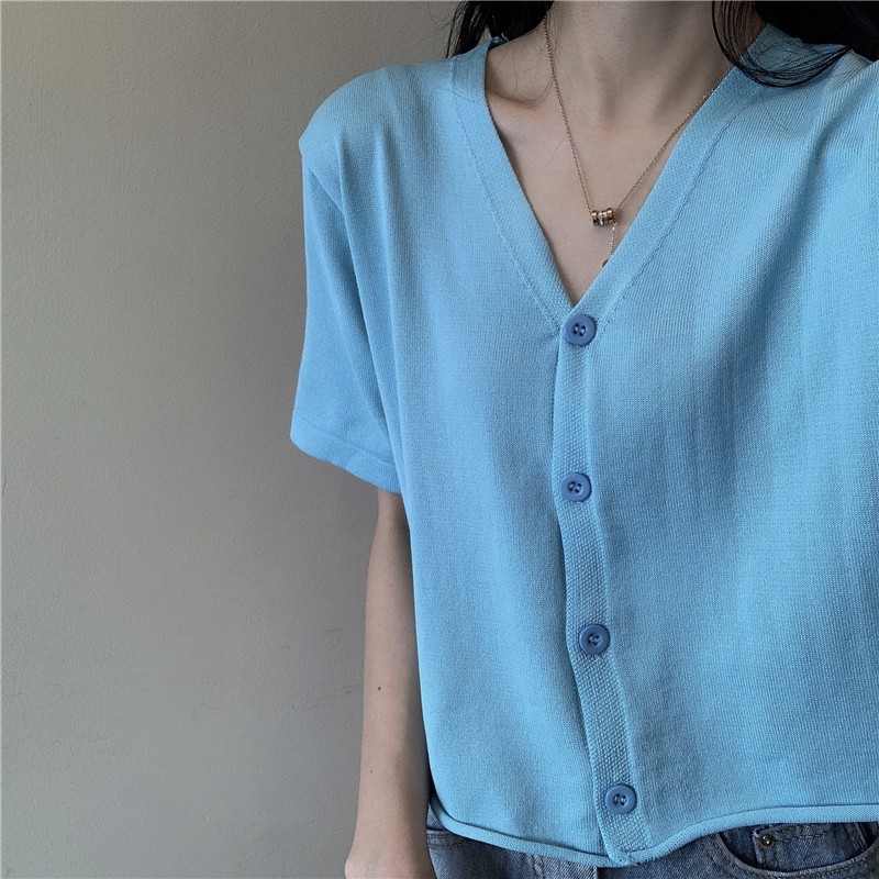 半小時前氣質v領薄款打底針織衫,2020夏季新款女裝短款開衫上衣 - 【買一送三】任選4件,僅需NT$1198